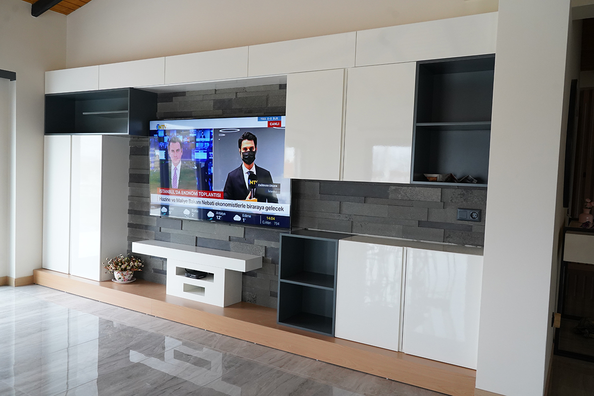 - Alan Ölçüleri: TV ünitesinin yerleştirileceği alanın ölçüleri alınarak tasarıma başlanır. TV ünitesi, duvarın boyutlarına uygun olacak şekilde ölçülür. Ayrıca, TV ünitesinin yerleştirileceği odanın dekorasyon tarzı da tasarımı etkiler.
